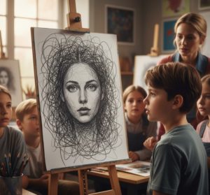 During an art class, a boy quickly sketched random lines that seemed meaningless—until he turned the page upside down and revealed a clear portrait. His classmates gasped, realising beauty had been forming all along.